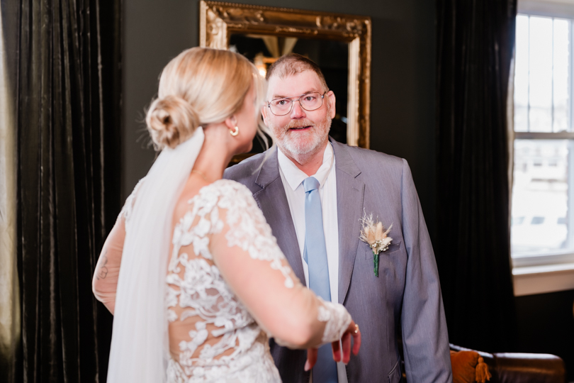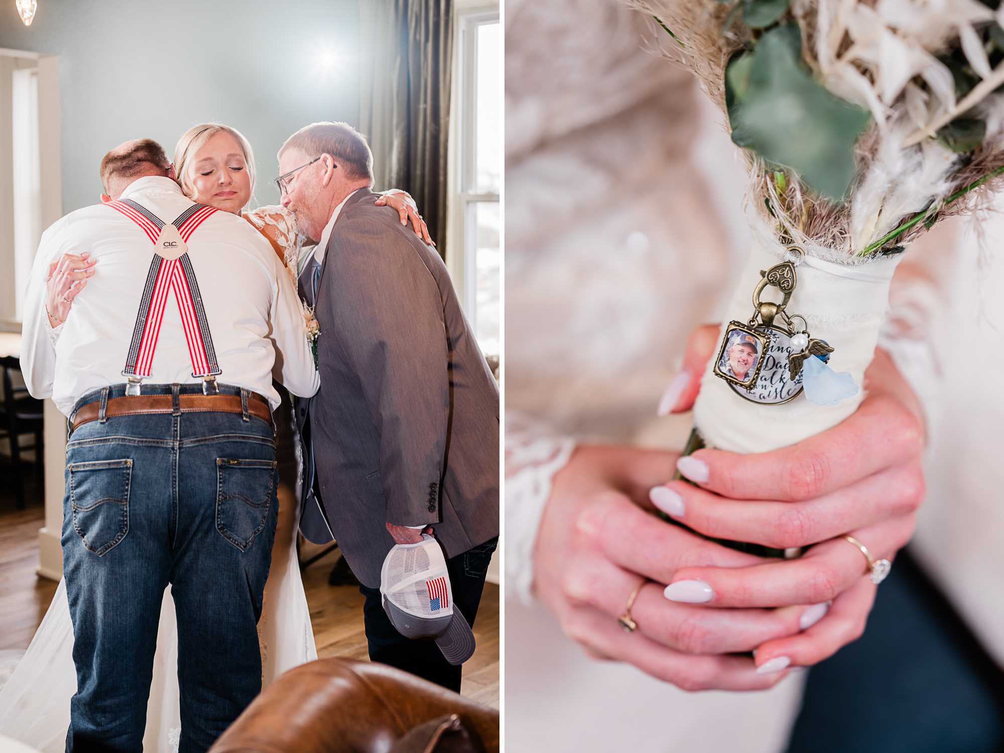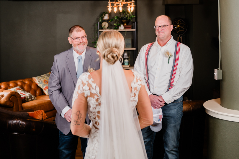 One of the most emotional moments of the day came next. Since JoDee recently lost her dad, she chose to share a first look with her dad’s brother and her dad’s best friend, who has become a father figure in her life. Watching this moment unfold was incredibly moving. There truly wasn’t a dry eye in the room as they embraced JoDee and shared in such a meaningful tribute to her dad’s presence and influence in her life.