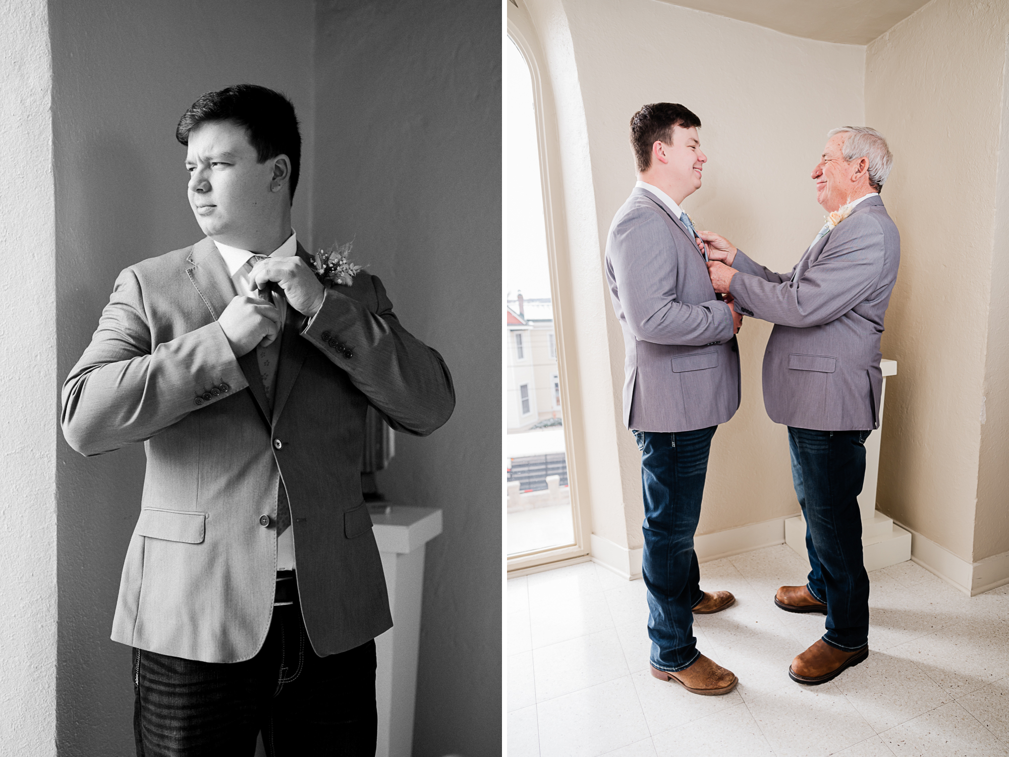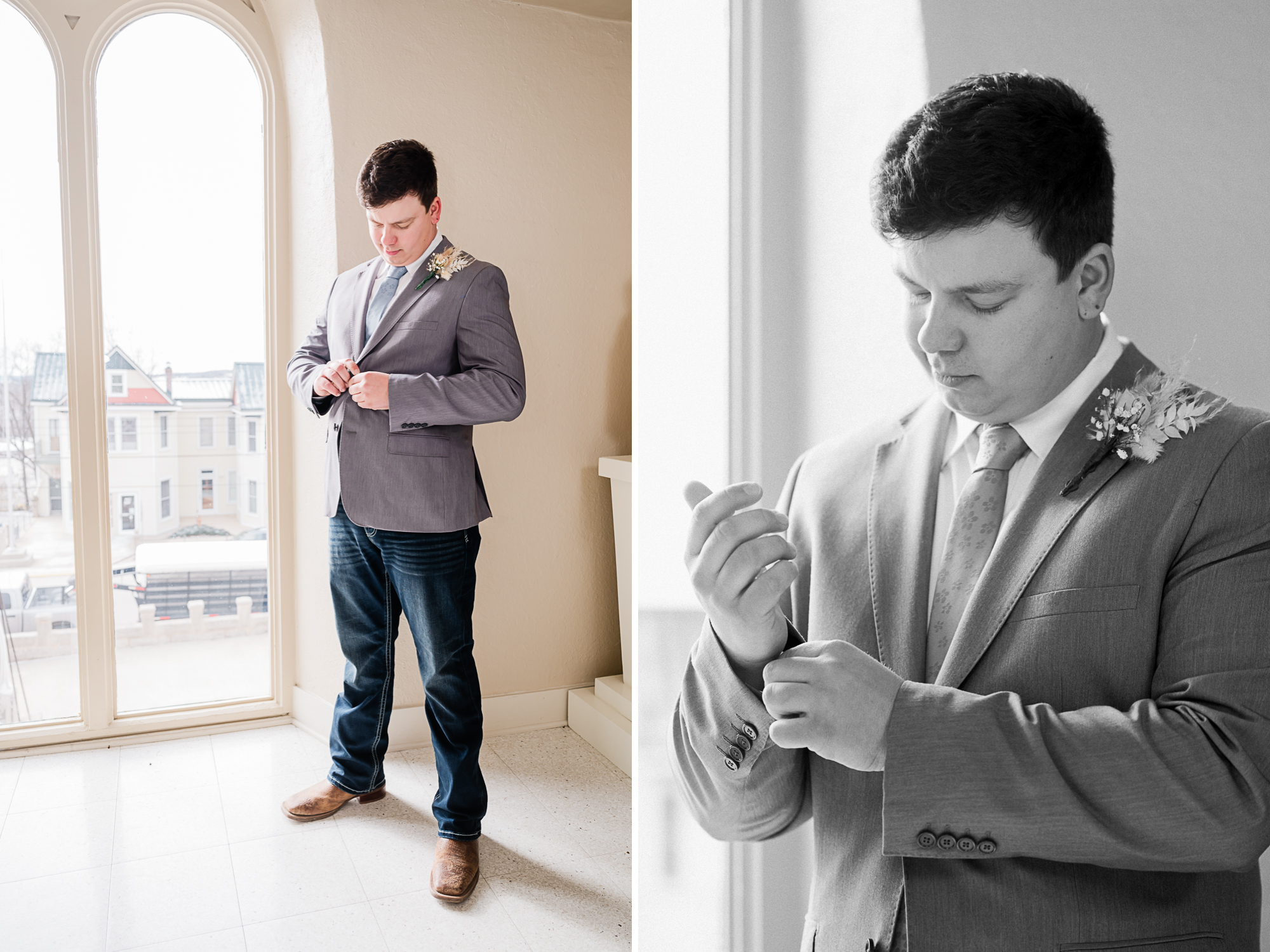 Tony and his groomsmen joined us there for a few quick outdoor portraits before retreating inside the warmth of the church. Up in the loft, Tony shared a few incredibly sweet moments with his parents as he prepared to see his bride!