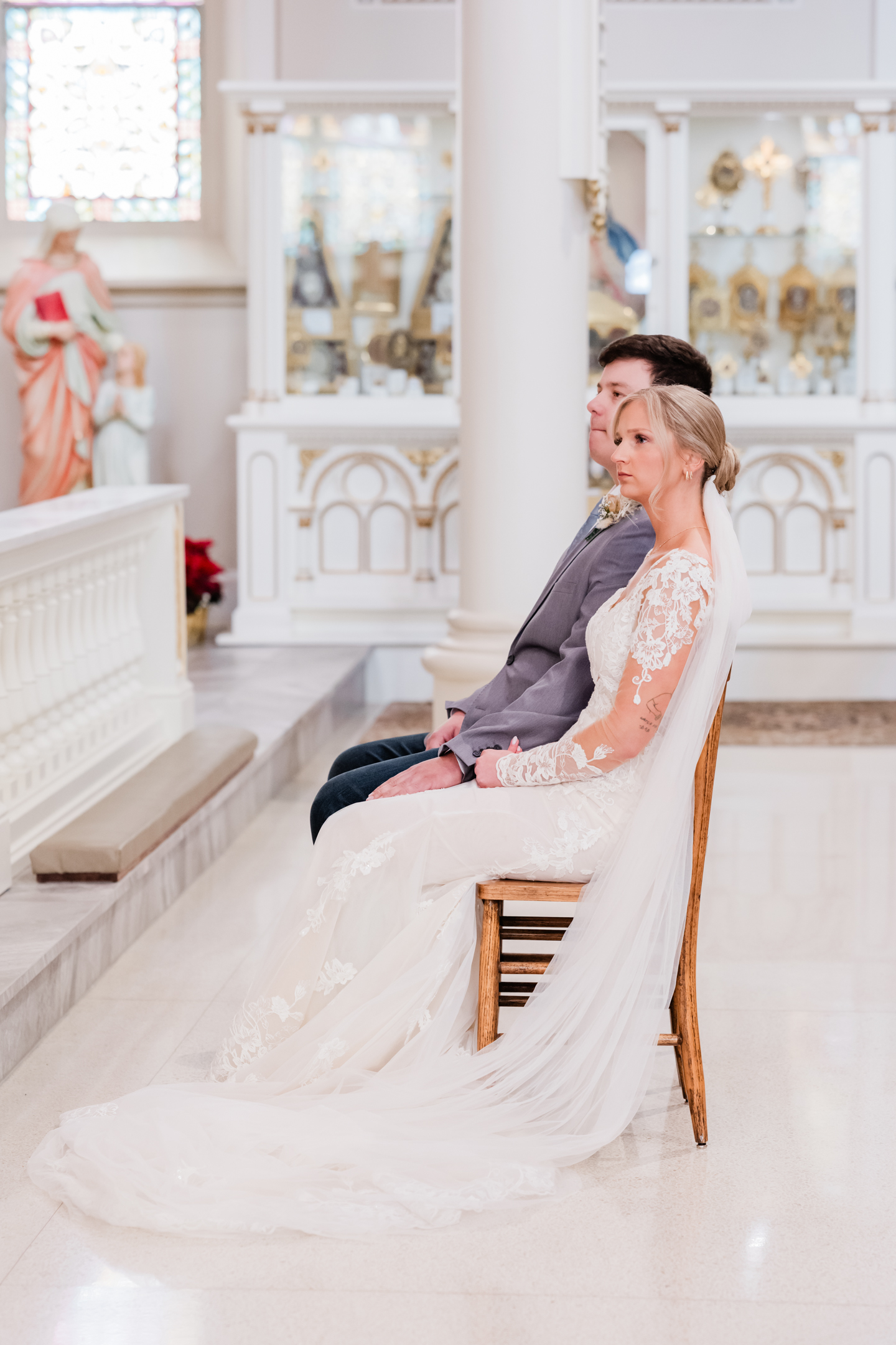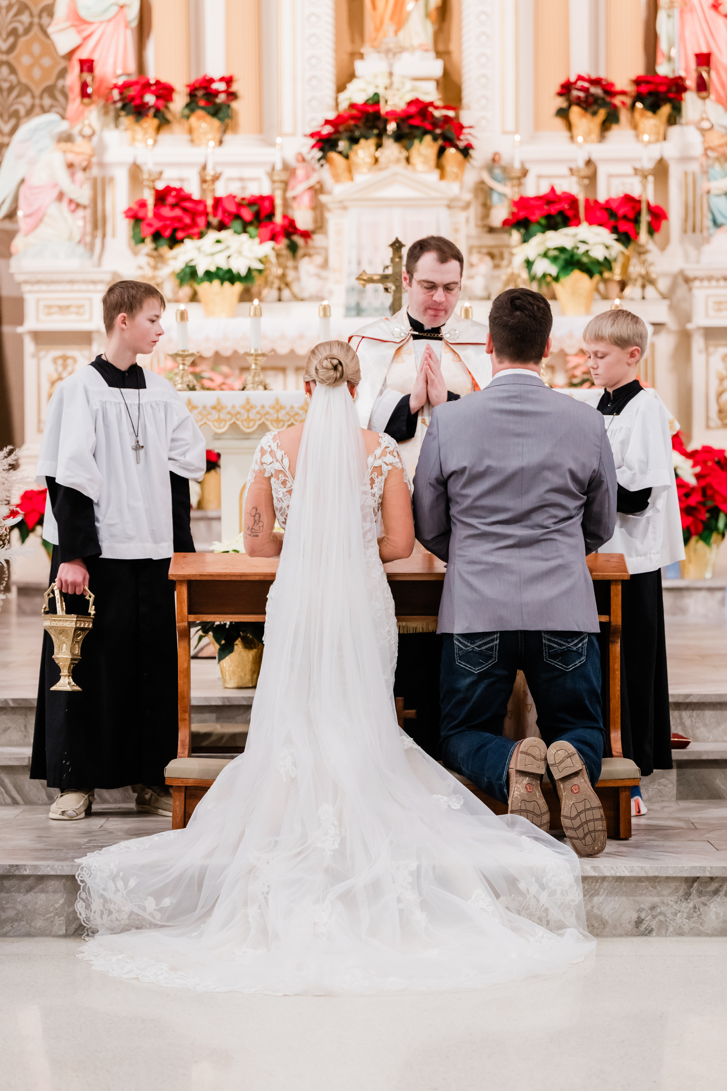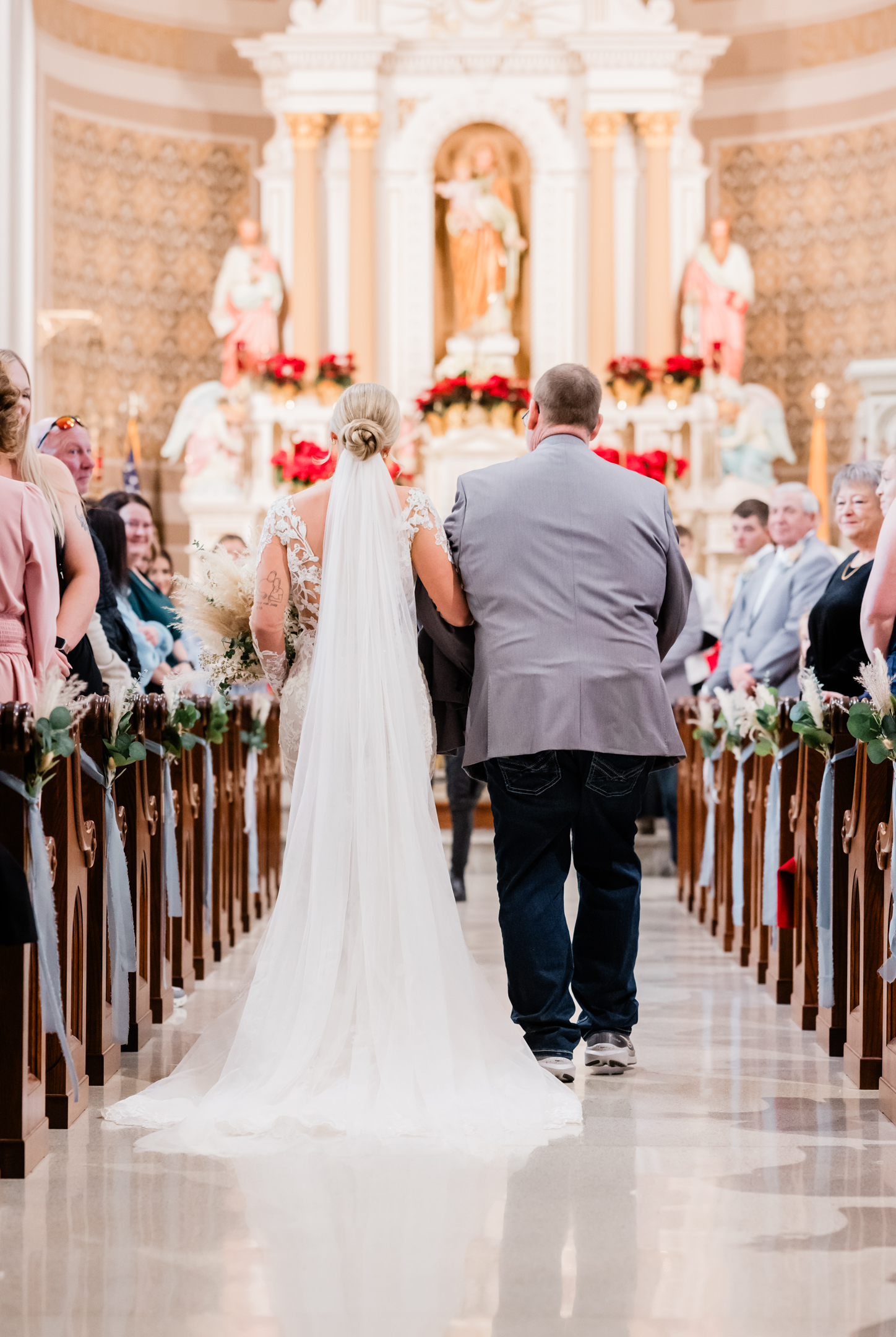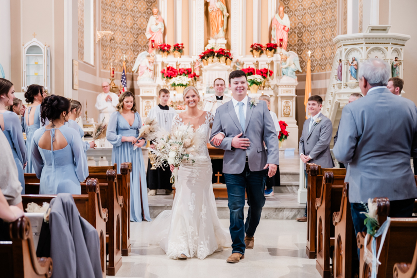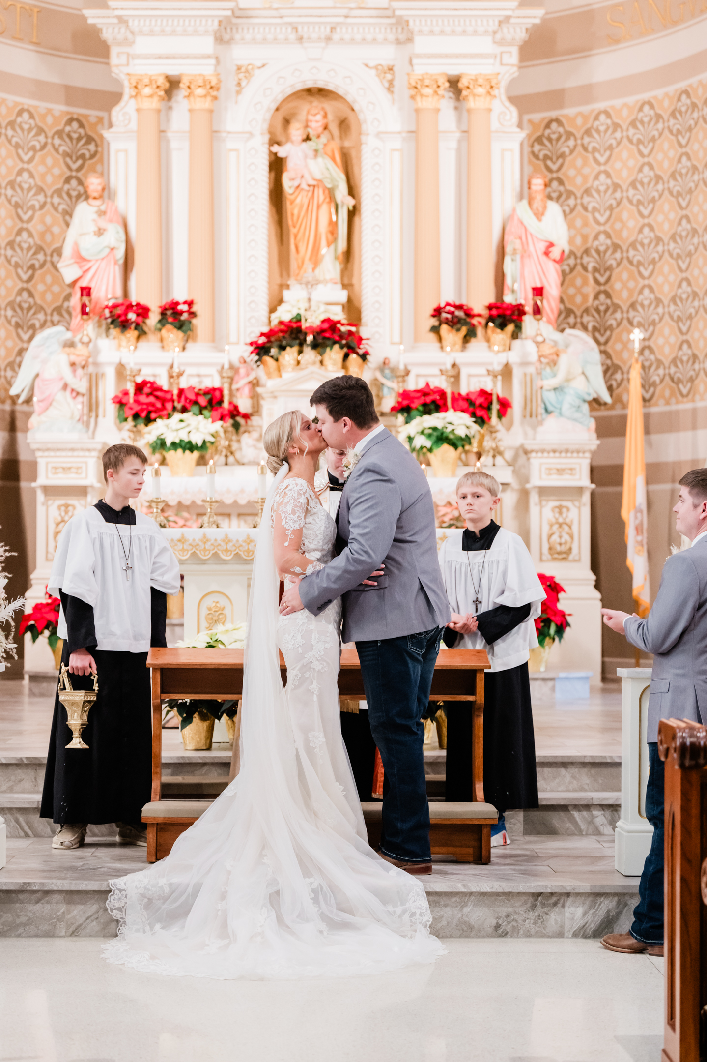 JoDee and Tony were married during a beautiful and traditional Catholic Mass at St. Joseph Catholic Church. They sealed their vows with a kiss and joyfully made their way back up the aisle, officially beginning their new life together!