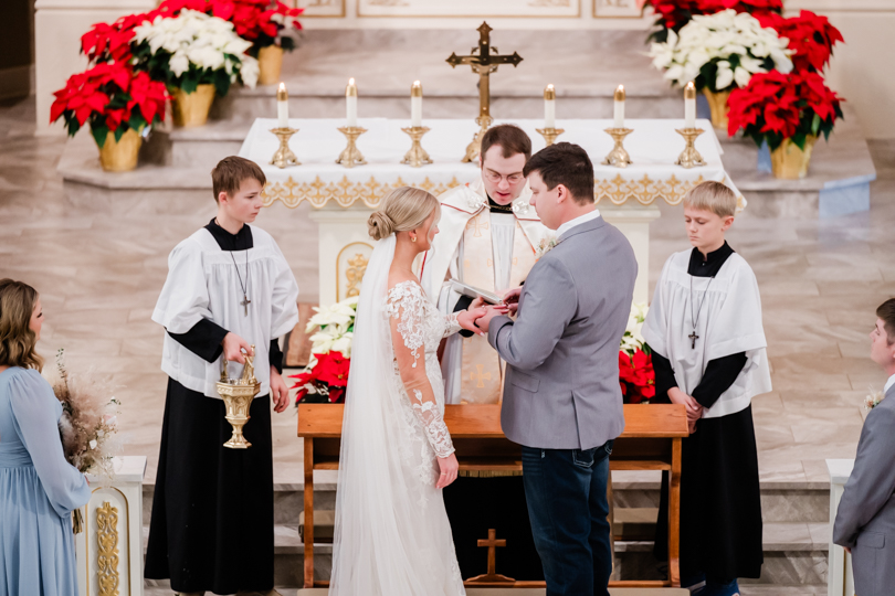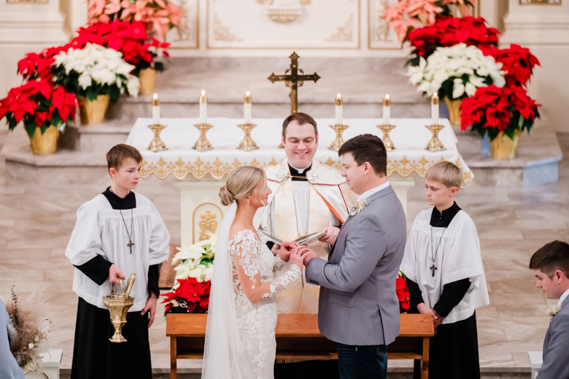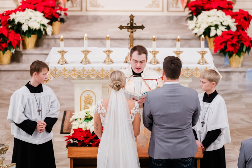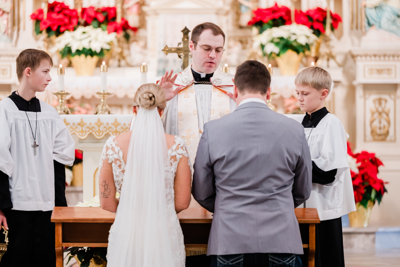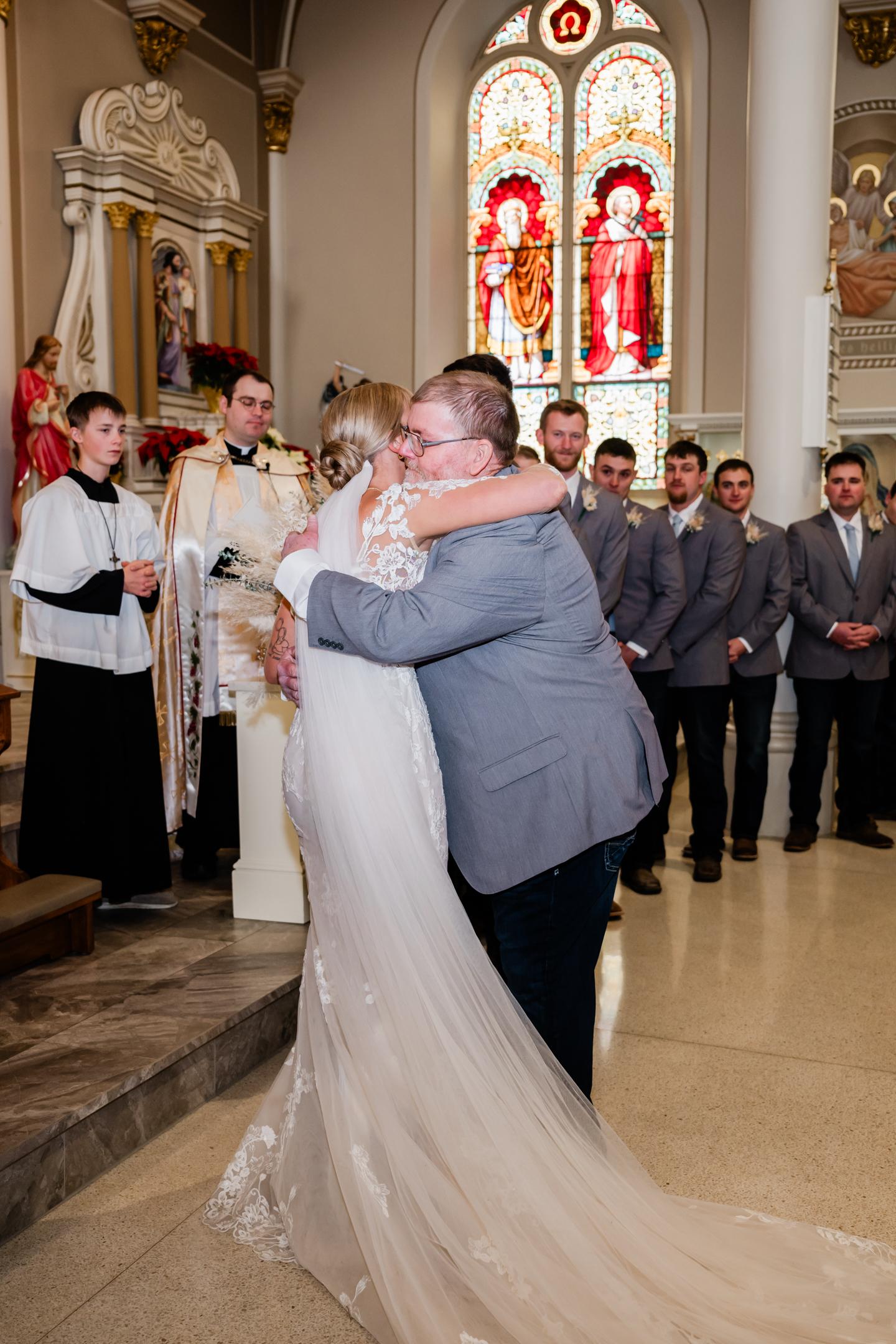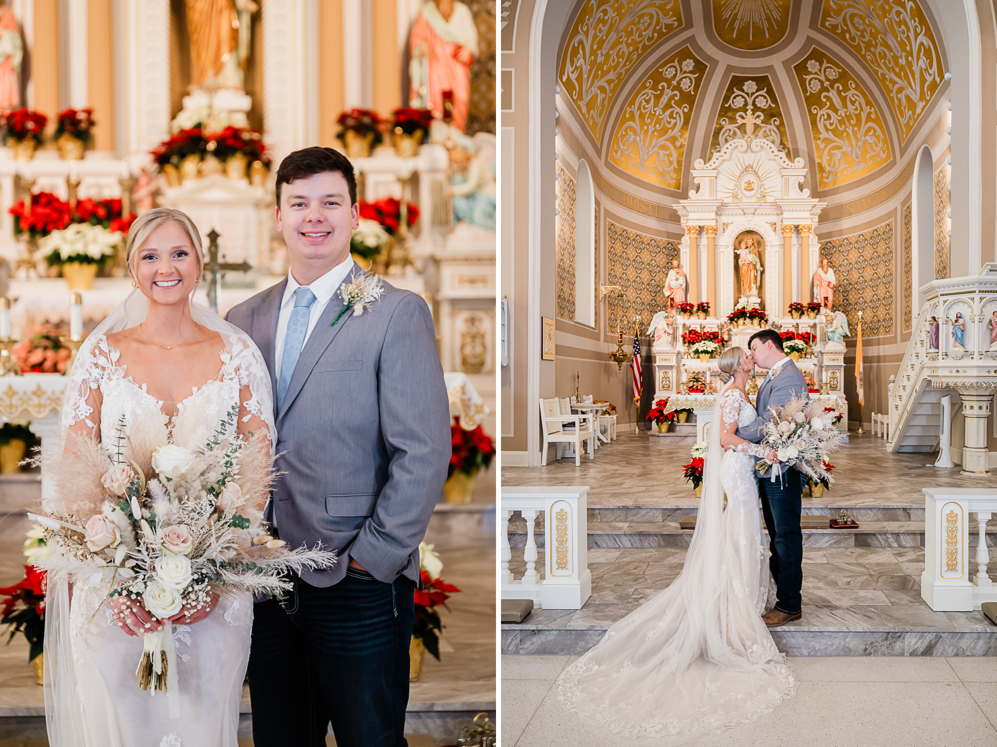 JoDee and Tony were married during a beautiful and traditional Catholic Mass at St. Joseph Catholic Church. They sealed their vows with a kiss and joyfully made their way back up the aisle, officially beginning their new life together!