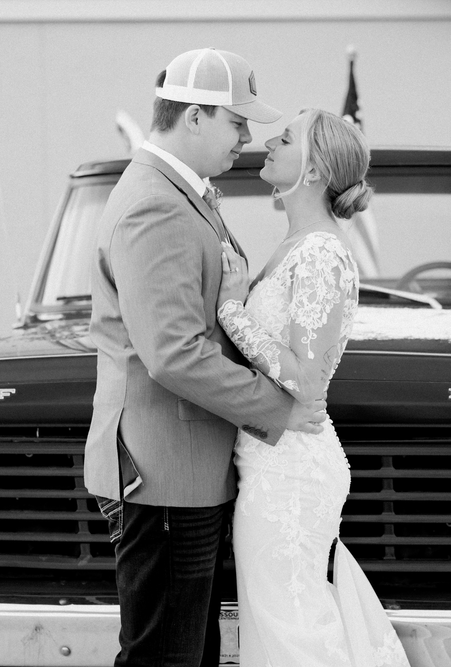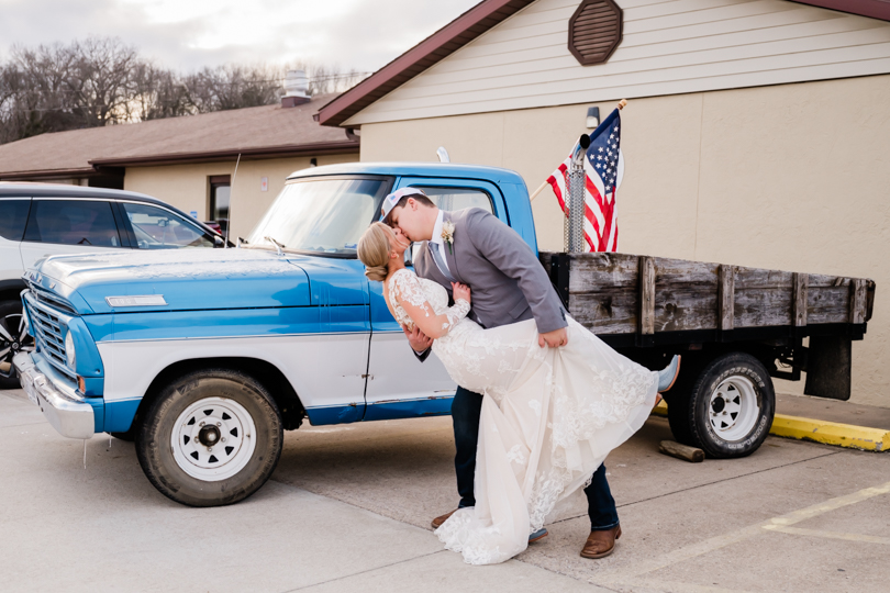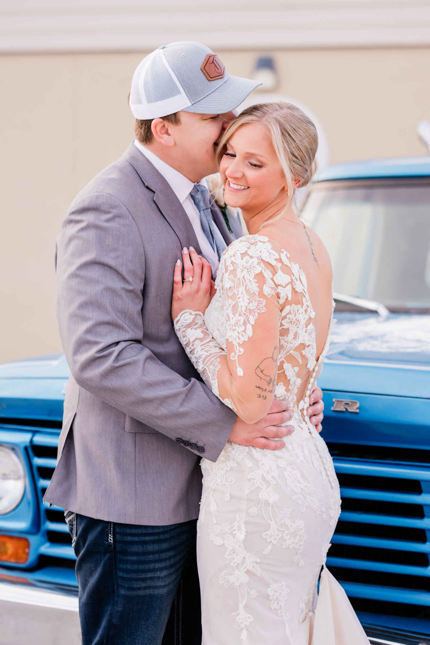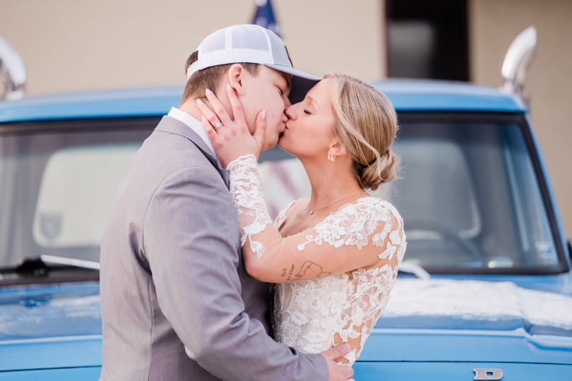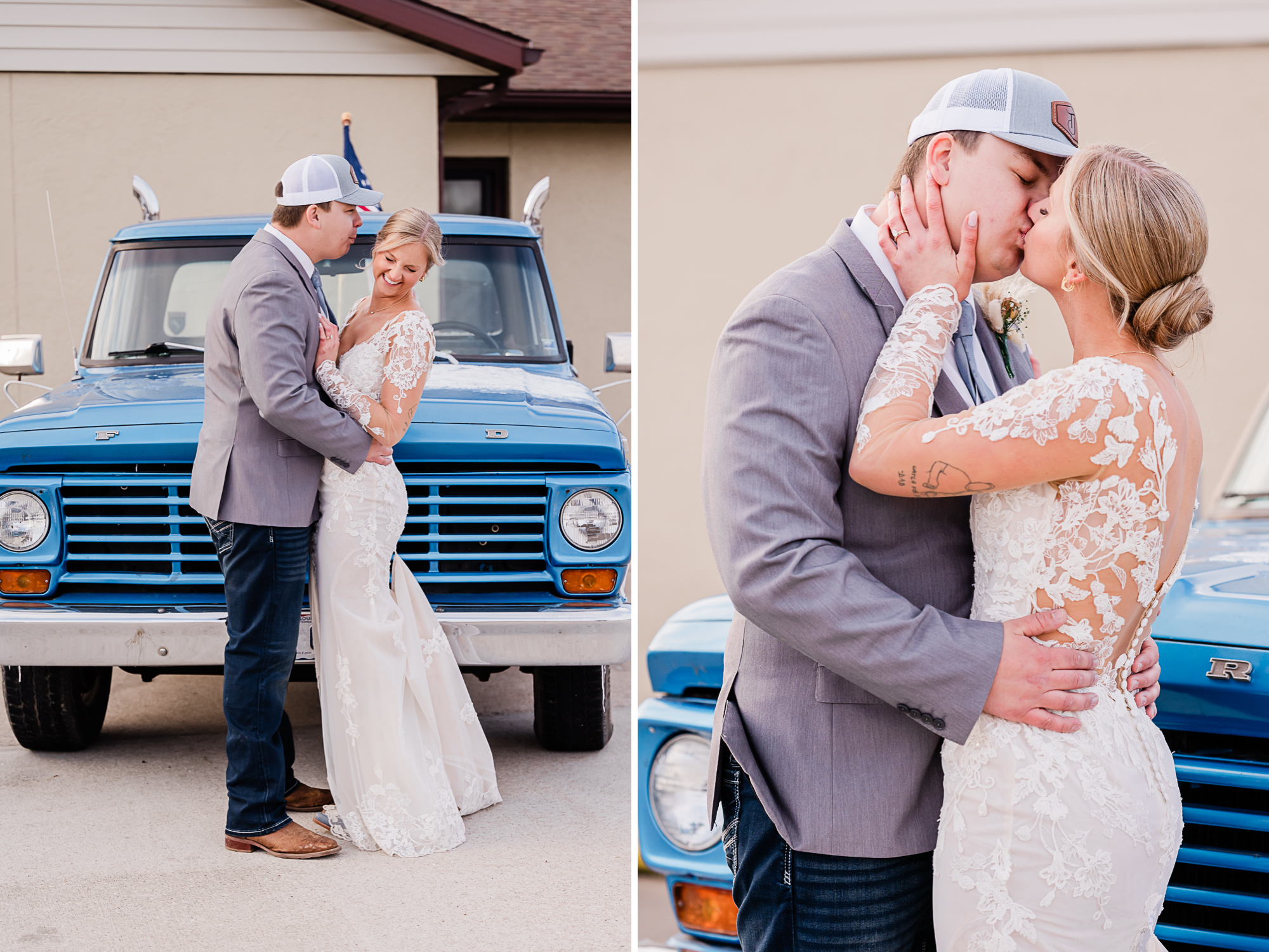 Back at the reception hall, JoDee and Tony stepped outside briefly once more for a few portraits with her dad’s blue Ford truck, another sentimental tribute that made the day even more meaningful.