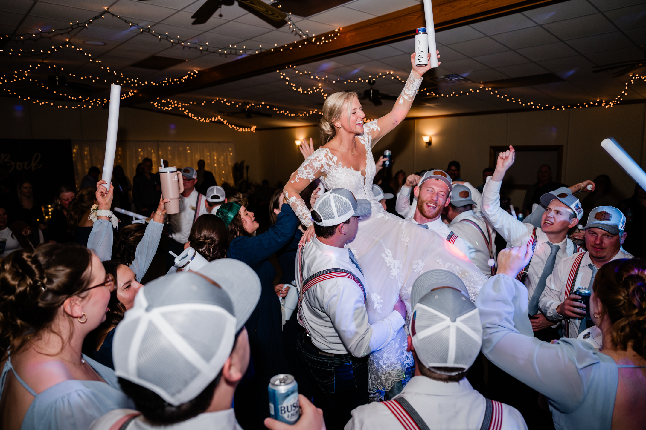 Each bridesmaid paused during their walk down the aisle to place a flower into the vase for JoDee’s dad. Later in the day, JoDee would take these flowers to her dad’s gravesite. It was such a deeply thoughtful and emotional way to include him in every part of the celebration. Although he wasn’t physically present, his love and influence were felt throughout the entire day!