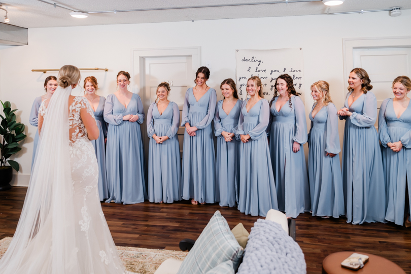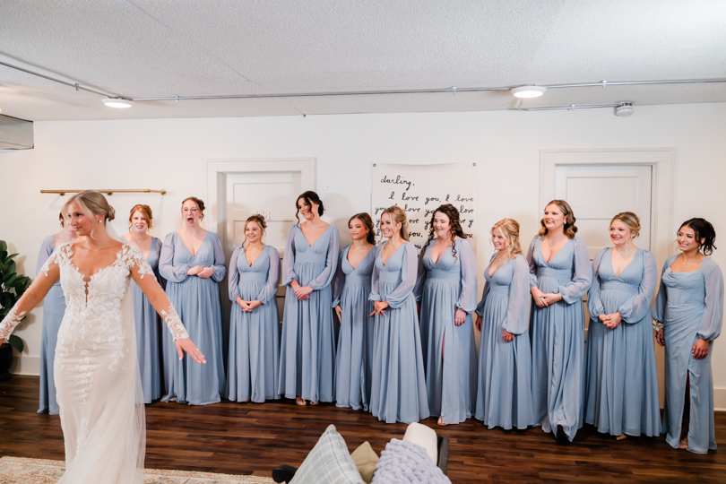 When JoDee revealed her bridal look to her bridesmaids, the room instantly erupted with cheers, excitement, and a few tears! It was such a beautiful moment of celebration and support from the women who mean so much to her.